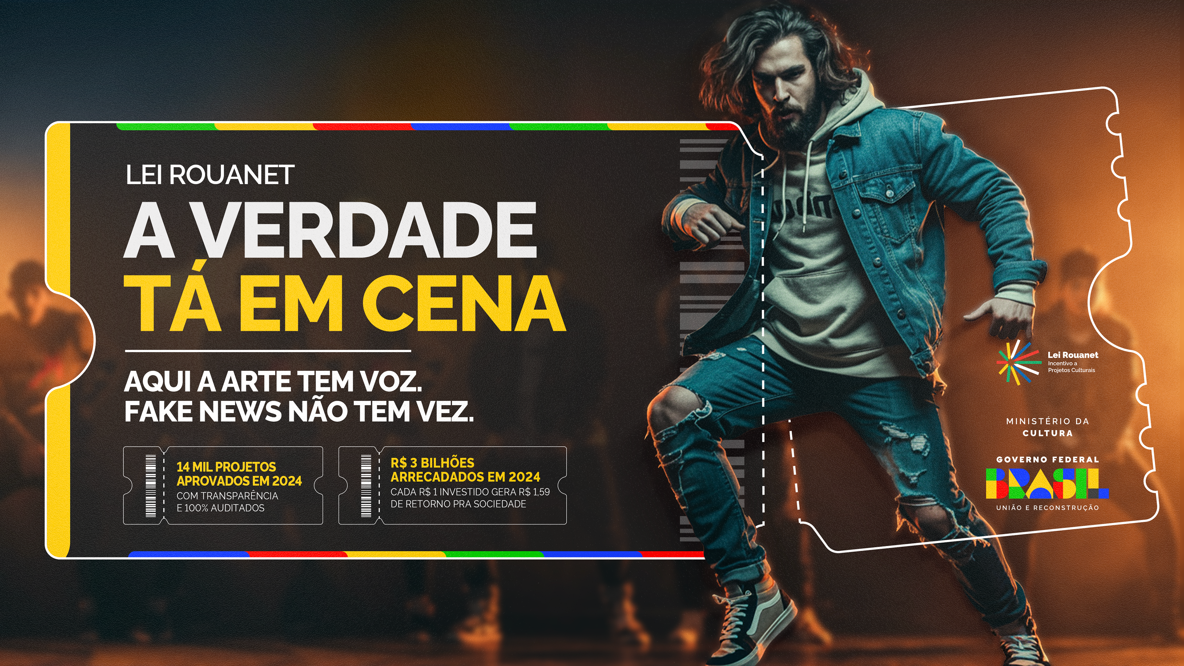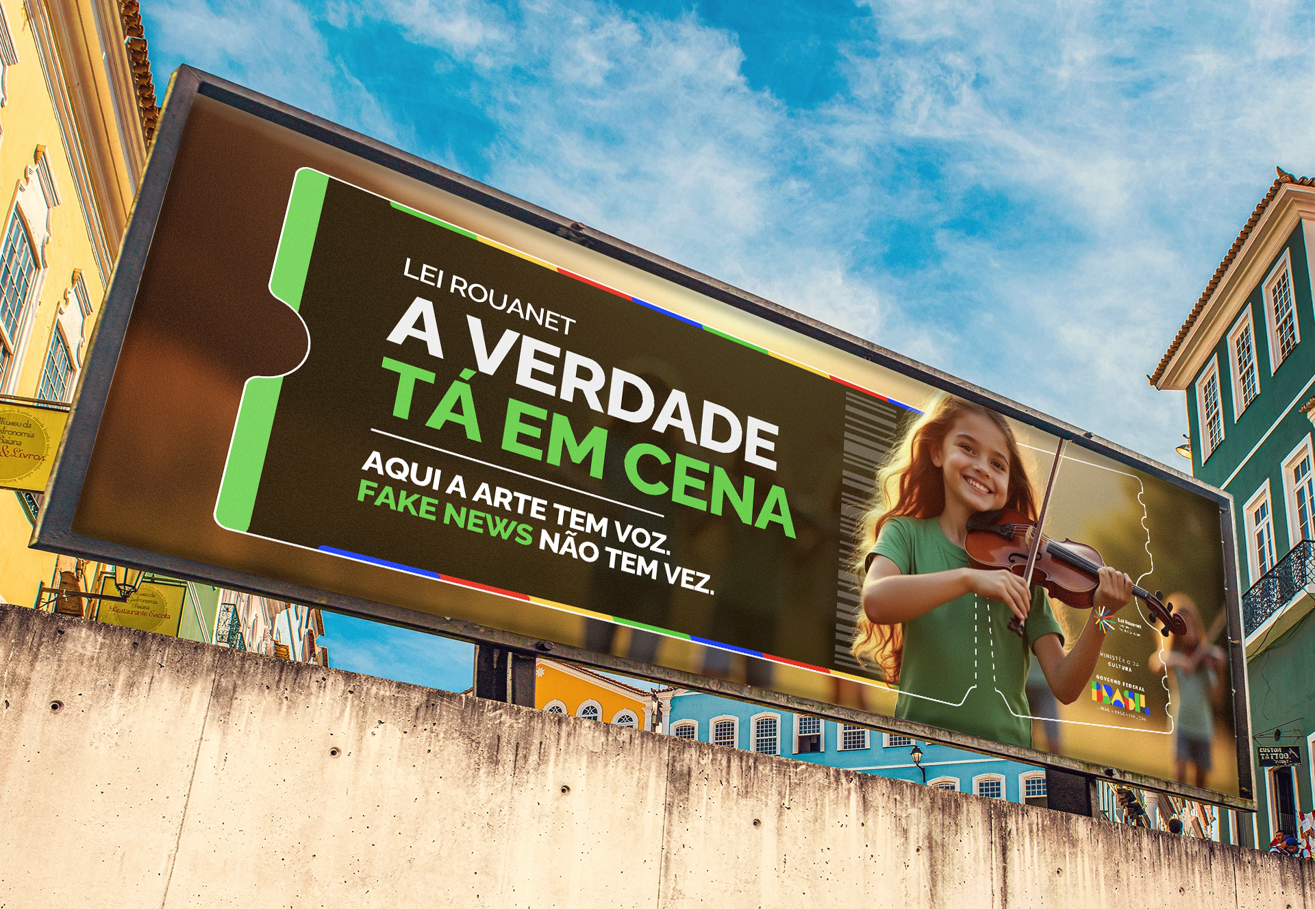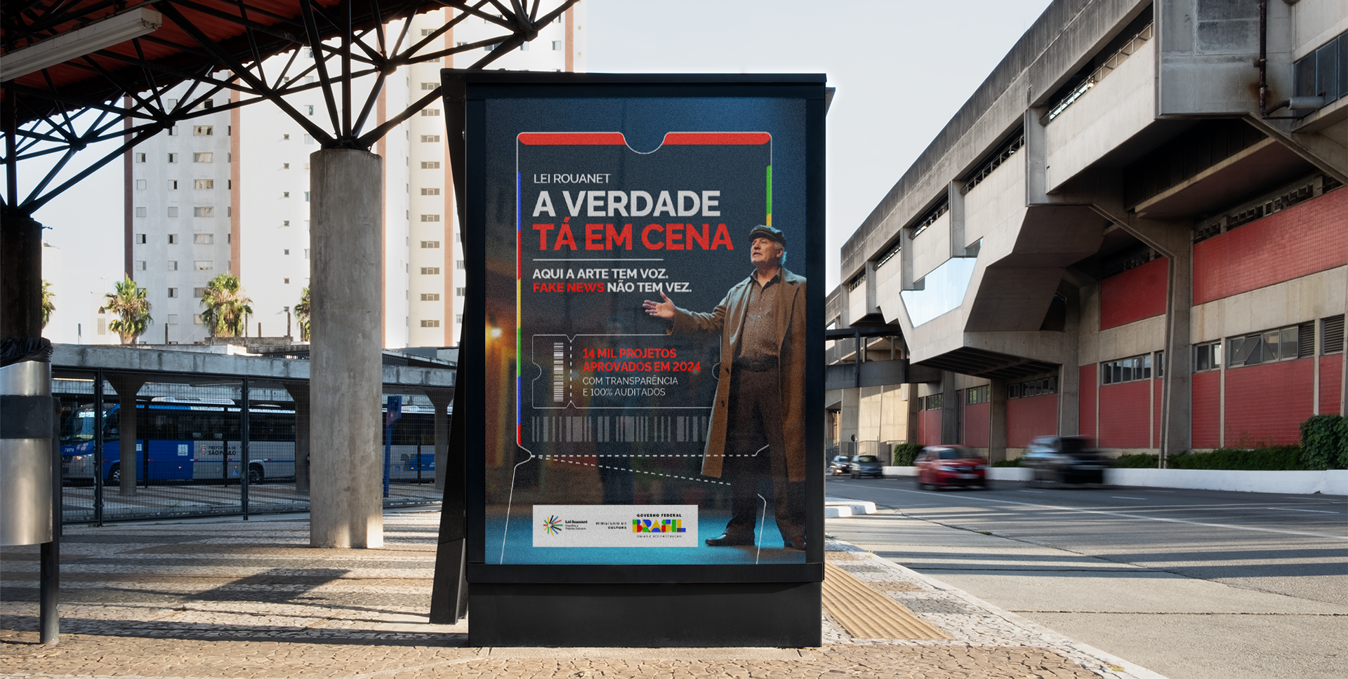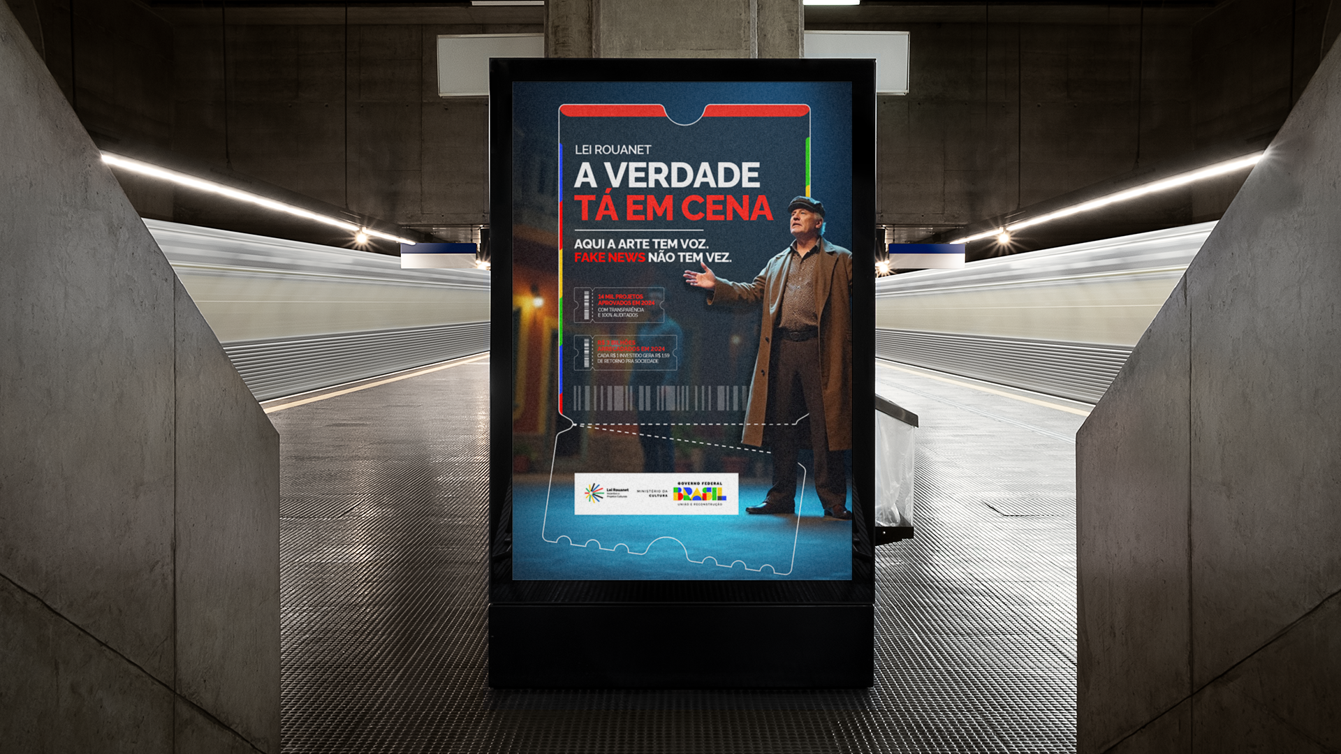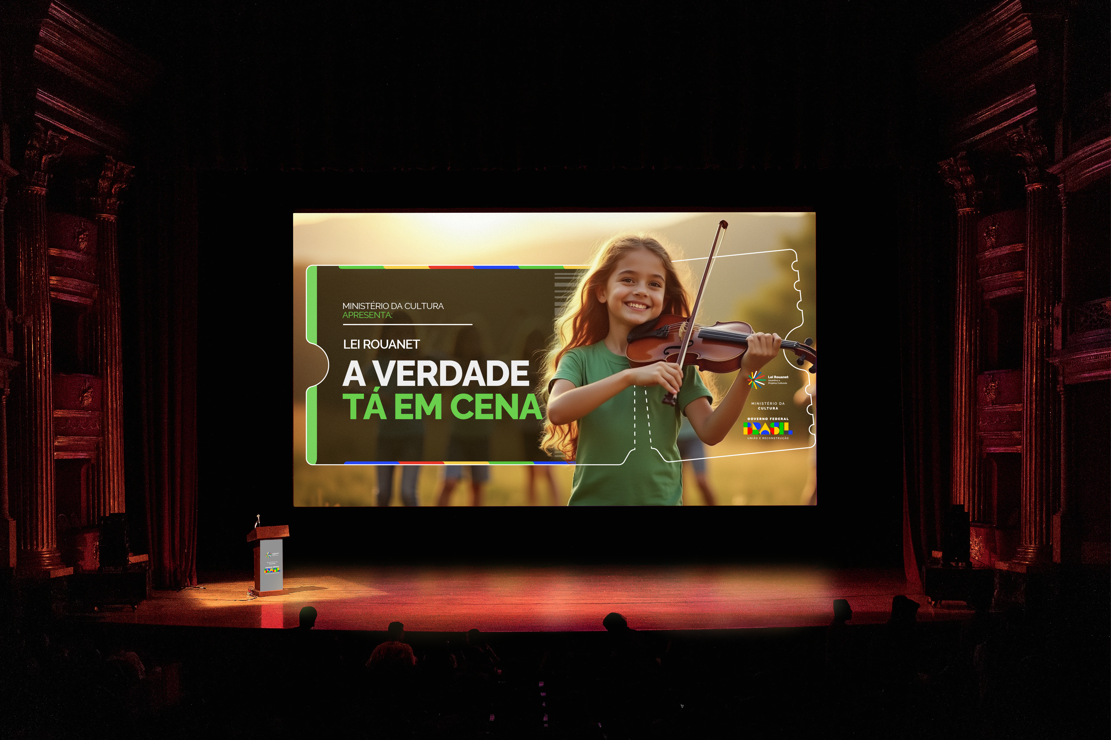 Ministério da Cultura — Governo Federal Brasil | Lei Rouanet — “A Verdade Tá em Cena” A campanha mostra o poder da arte e o impacto real da Lei Rouanet na sociedade, combatendo desinformação e fake news. Criamos um Key Visual forte e unificado, com cores vibrantes, tipografia marcante e composições que conectam música, dança e teatro, celebrando a diversidade artística brasileira. A narrativa combina dados reais com uma mensagem central: “Aqui a arte tem voz. Fake news não têm vez.” O resultado é uma comunicação clara, envolvente e visualmente impactante, que informa, emociona e reconecta o público com a importância da cultura no Brasil.