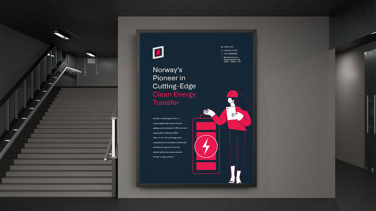 Hvert aspekt av OSTEKs identitet utstråler modernitet og presisjon, og understreker selskapets forpliktelse til en grønnere fremtid. Ved å kombinere avansert ingeniørkunst med en minimalistisk og dynamisk visuell tilnærming, etablerer OSTEK seg som en ledende aktør i overgangen til bærekraftig energi.